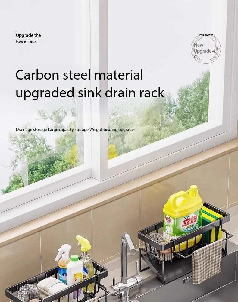 Kitchen Spice Storage Shelf with Drainage Rack, Installation Sink Organizer, Tap-Mounted Shelf for Home Kitchen Accessories